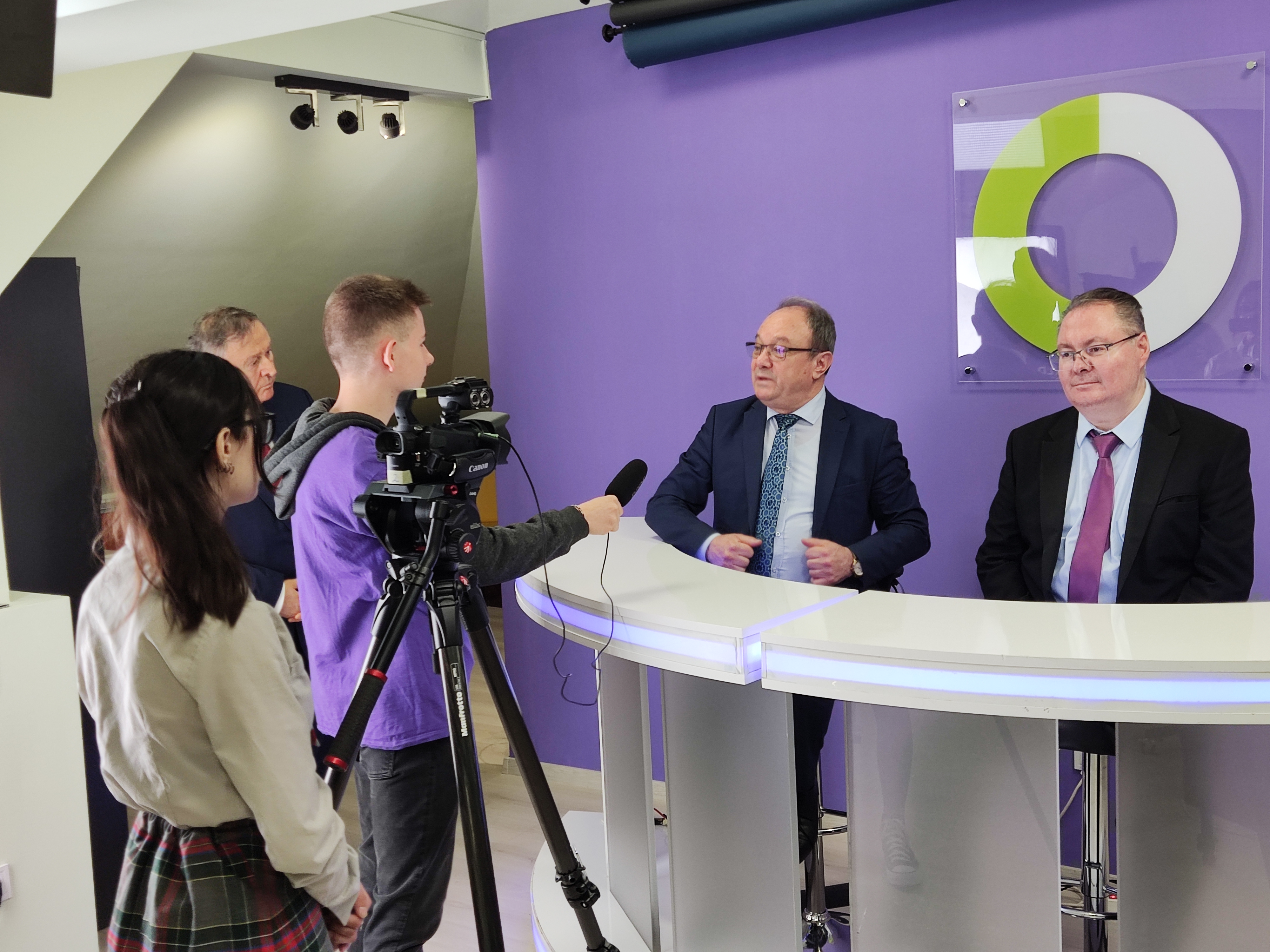 След церемонията по обявяване на стипендията гостите разгледаха училищния STEM център и специално оборудваното телевизионно студио.