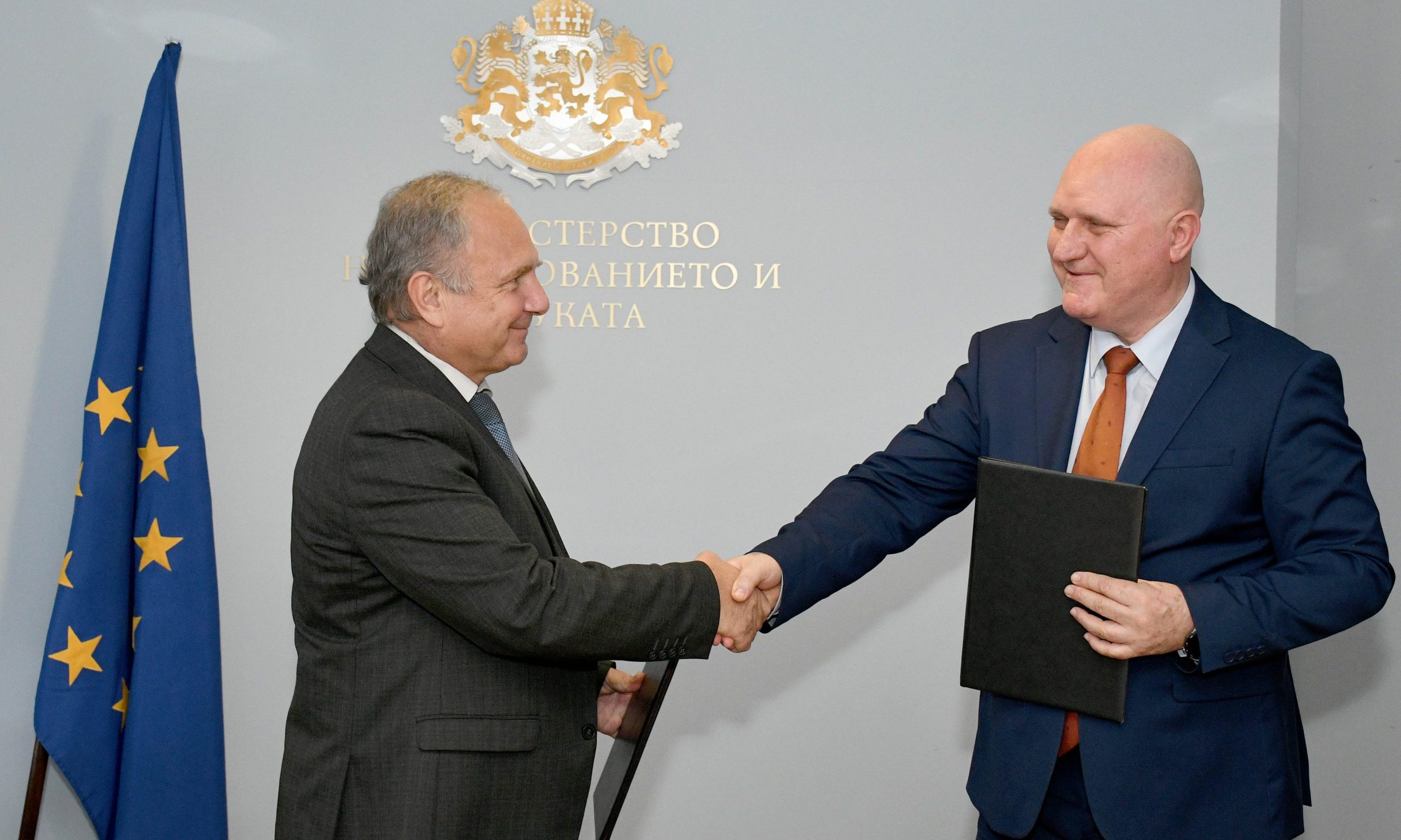 Снимка Пресцентър на МОН Министърът на образованието и науката проф. Галин Цоков и проф. Георги Вайсилов, изпълнителен директор на Изпълнителна агенция „Програма за образование“, подписаха документа за началото на проект „Силен старт“