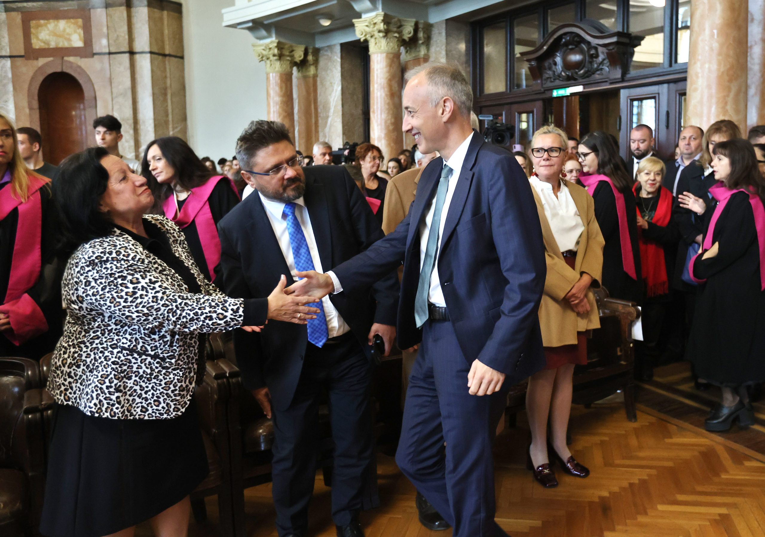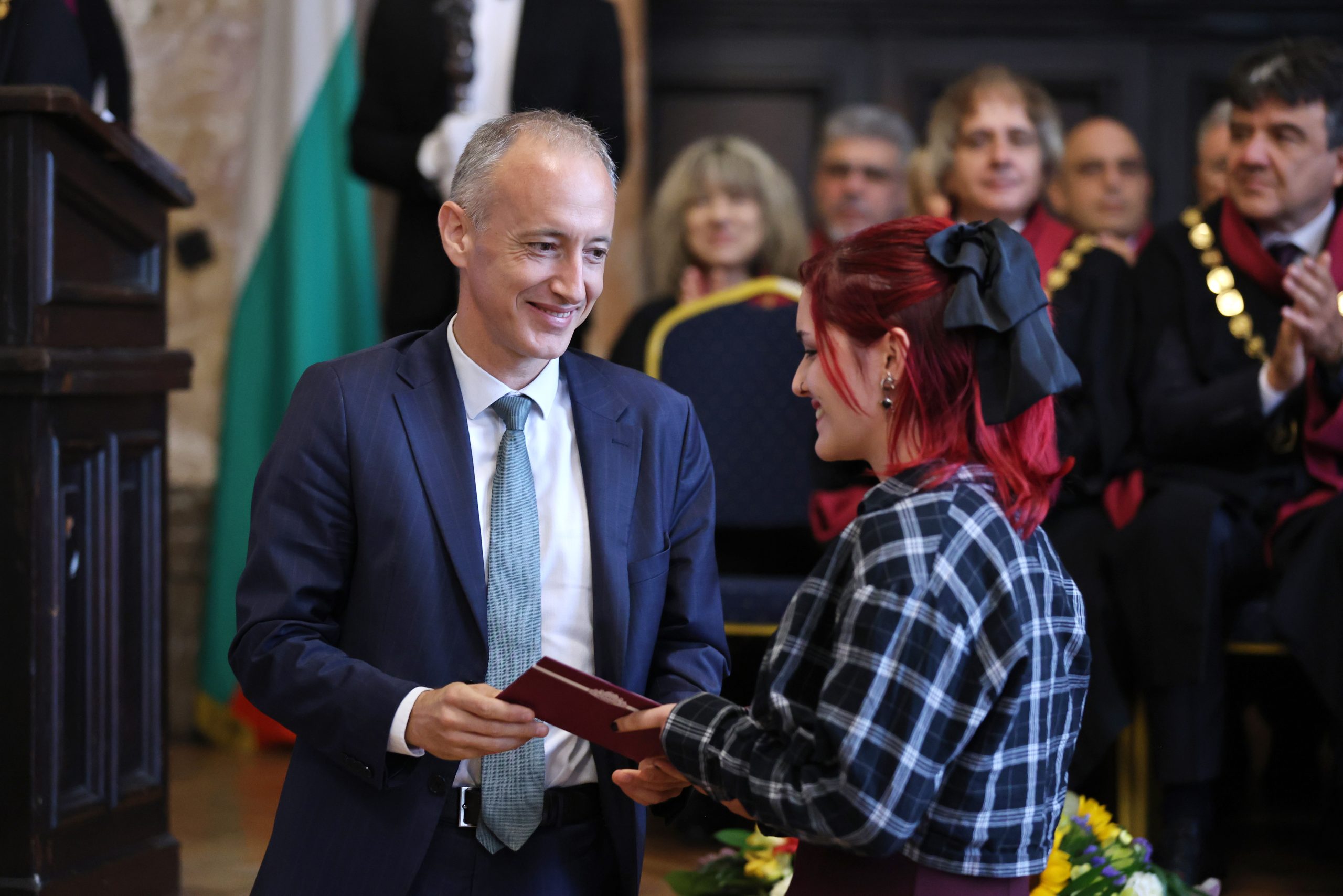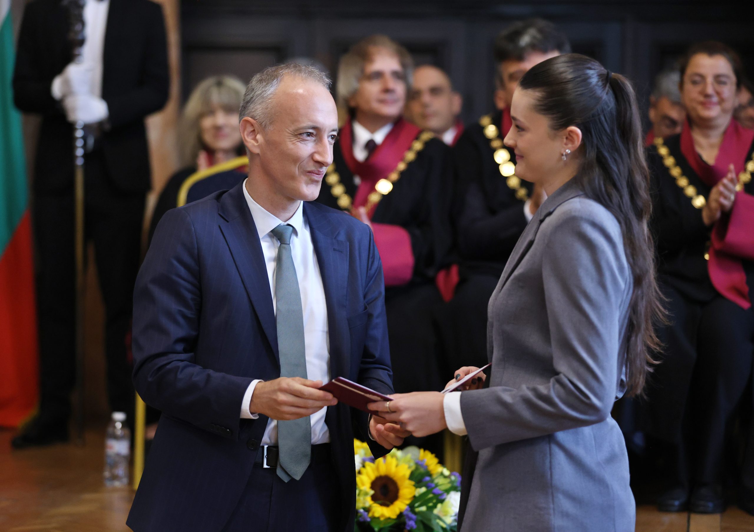 „Днес светът е голям, за младите хора възможности дебнат отвсякъде и те много често се чувстват задължени да отидат някъде другаде, но са оценили репутацията, значението и възможностите, които им дава Софийският университет“, каза Красимир Вълчев.