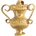 от средновековното селище в м. Кавлаклак, гр. Нови пазар, кръст енколпион с изображение на Богородица от Трапезица (Търново).