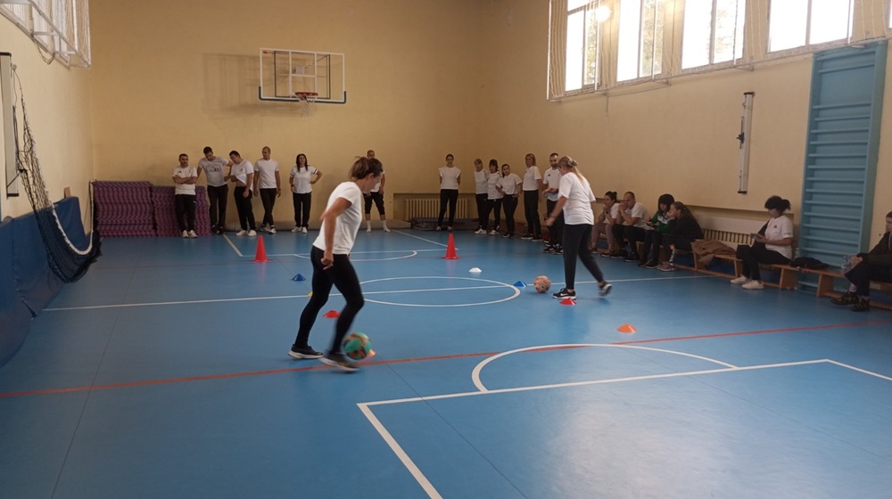 По време на майсторския клас Тонев впечатлява колегите как без наличието на физкултурен салон в ОУ „Иван Вазов“ и само с подръчни материали успява да запали у децата любов към спорта.