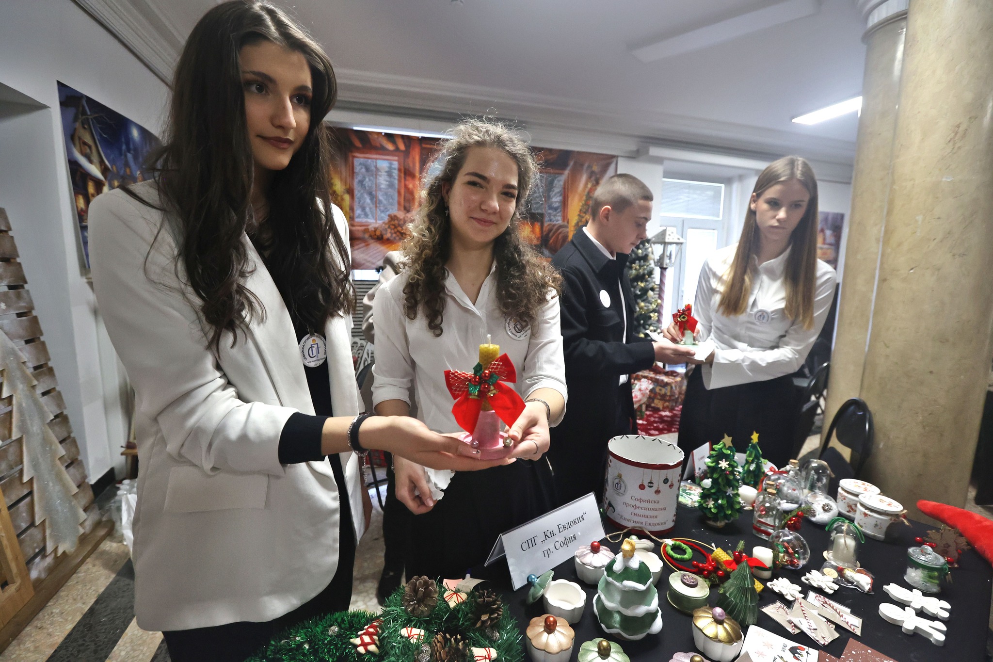 Ръчно изработени сладки, шоколади, бисквитки и други лакомства и печива, коледни свещници, картички, сувенири, сурвачки, дървени дъски за рязане, натурална козметика и още много най-различни продукти, дело на ученици от 13 гимназии, бяха изложени на Коледния базар на професионалните умения в Министерството на образованието и науката.