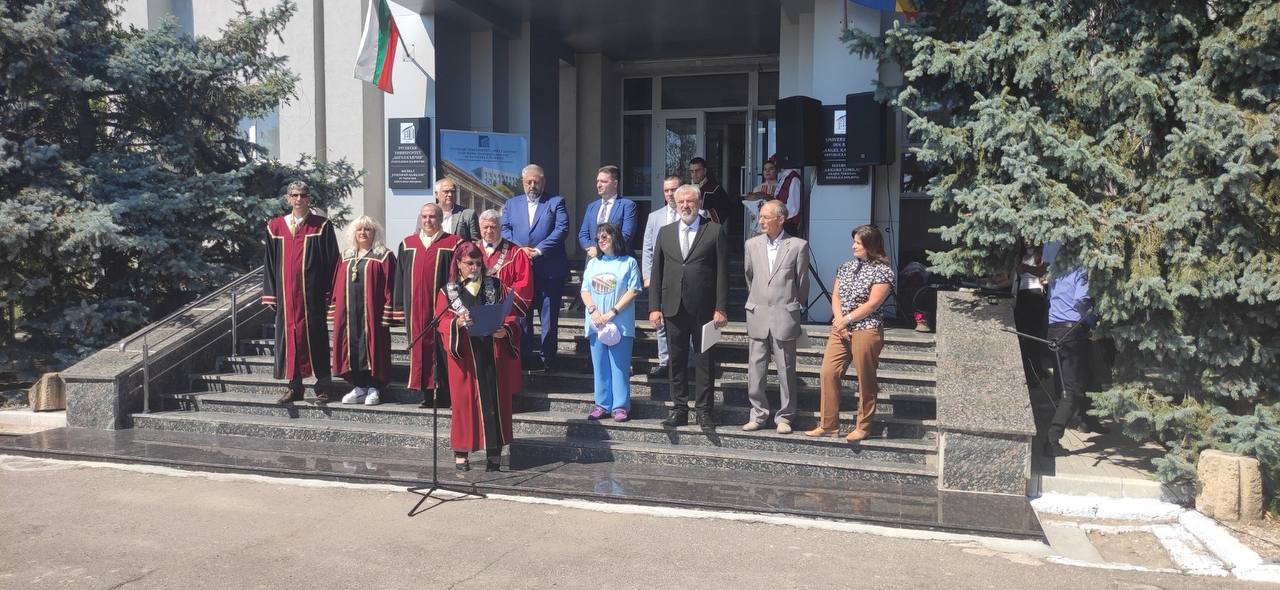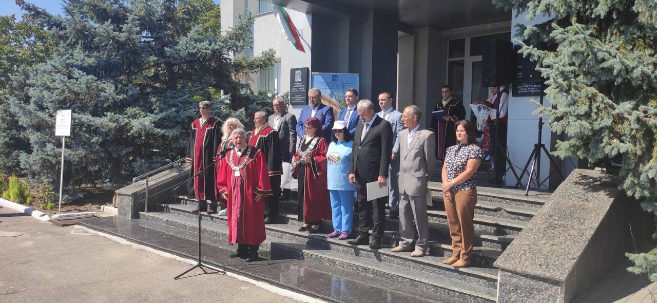 „Посрещаме над 150 нови студенти, които ще започнат своето образование. Новата академична година е начало на нов път – път към знание, професионализъм и личностно израстване“, заяви в словото си ректорът доц. Десислава Атанасова.