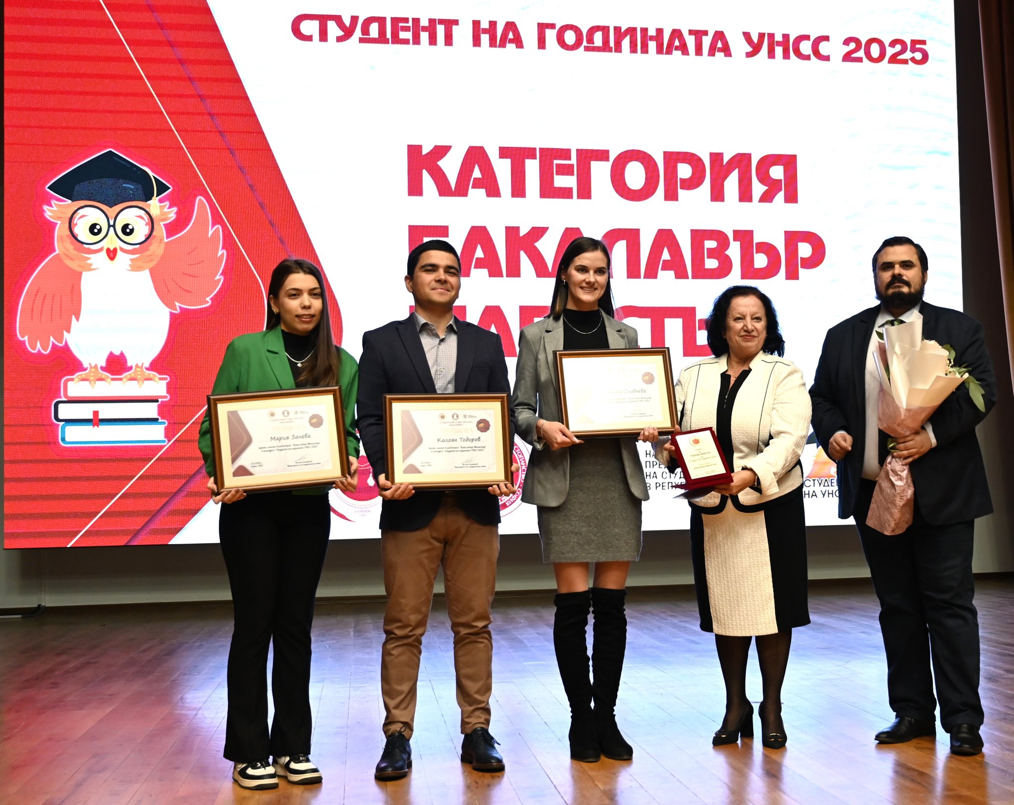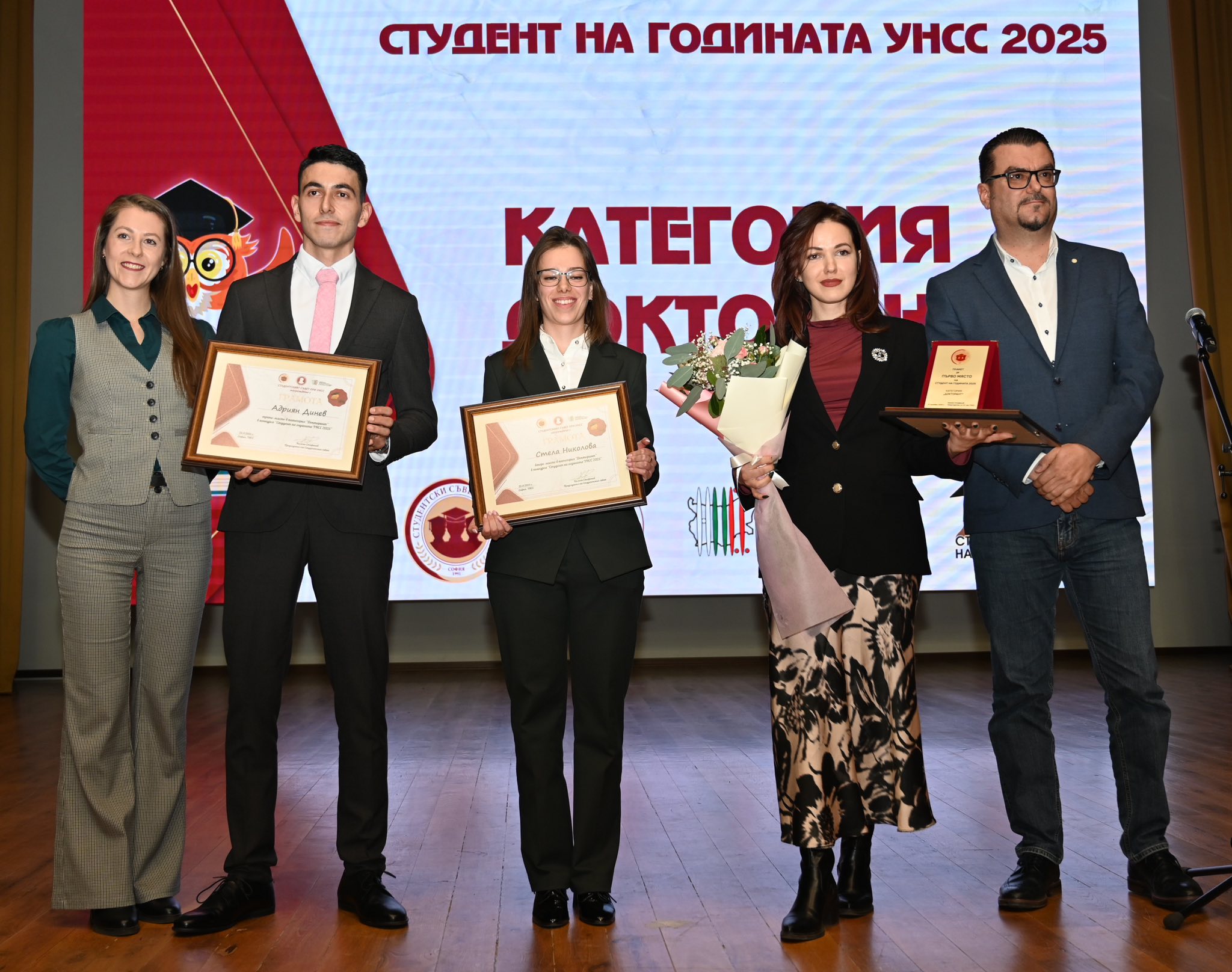 На церемонията бяха отличени и останалите победители в XXII издание на конкурса „Студент на годината на УНСС“, организиран от Студентския съвет под патронажа на ректора.