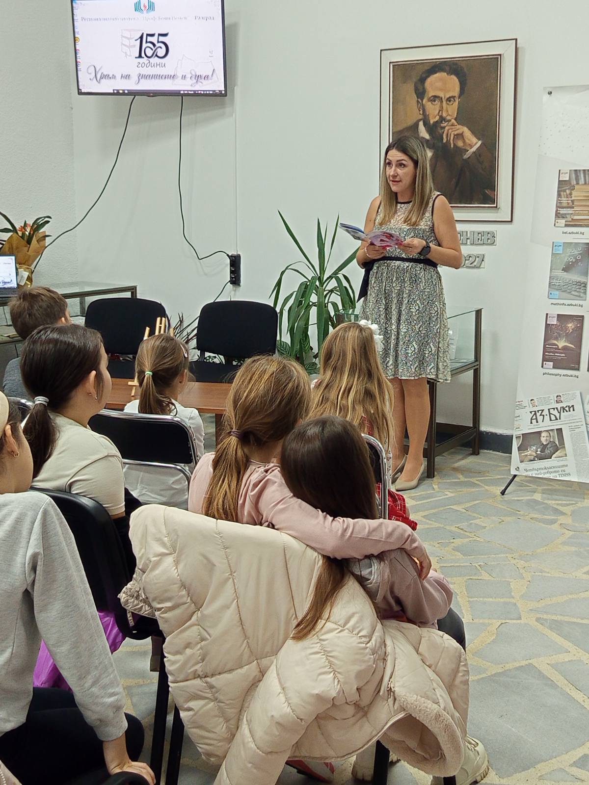 Главният библиотекар поднесе на гостите подаръци по повод 155-годишнината на Регионалната библиотека „Проф. Боян Пенев“ в Разград.