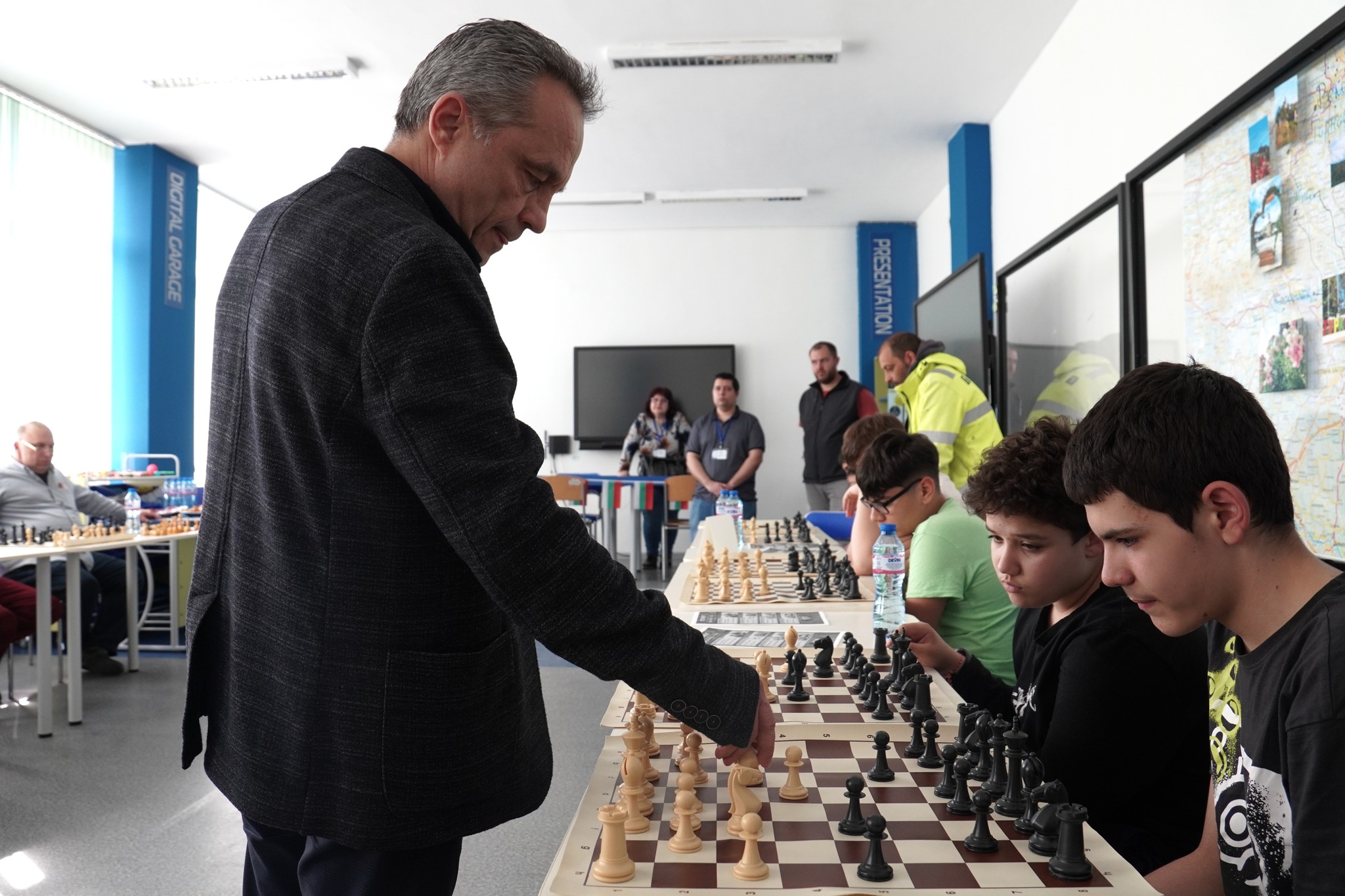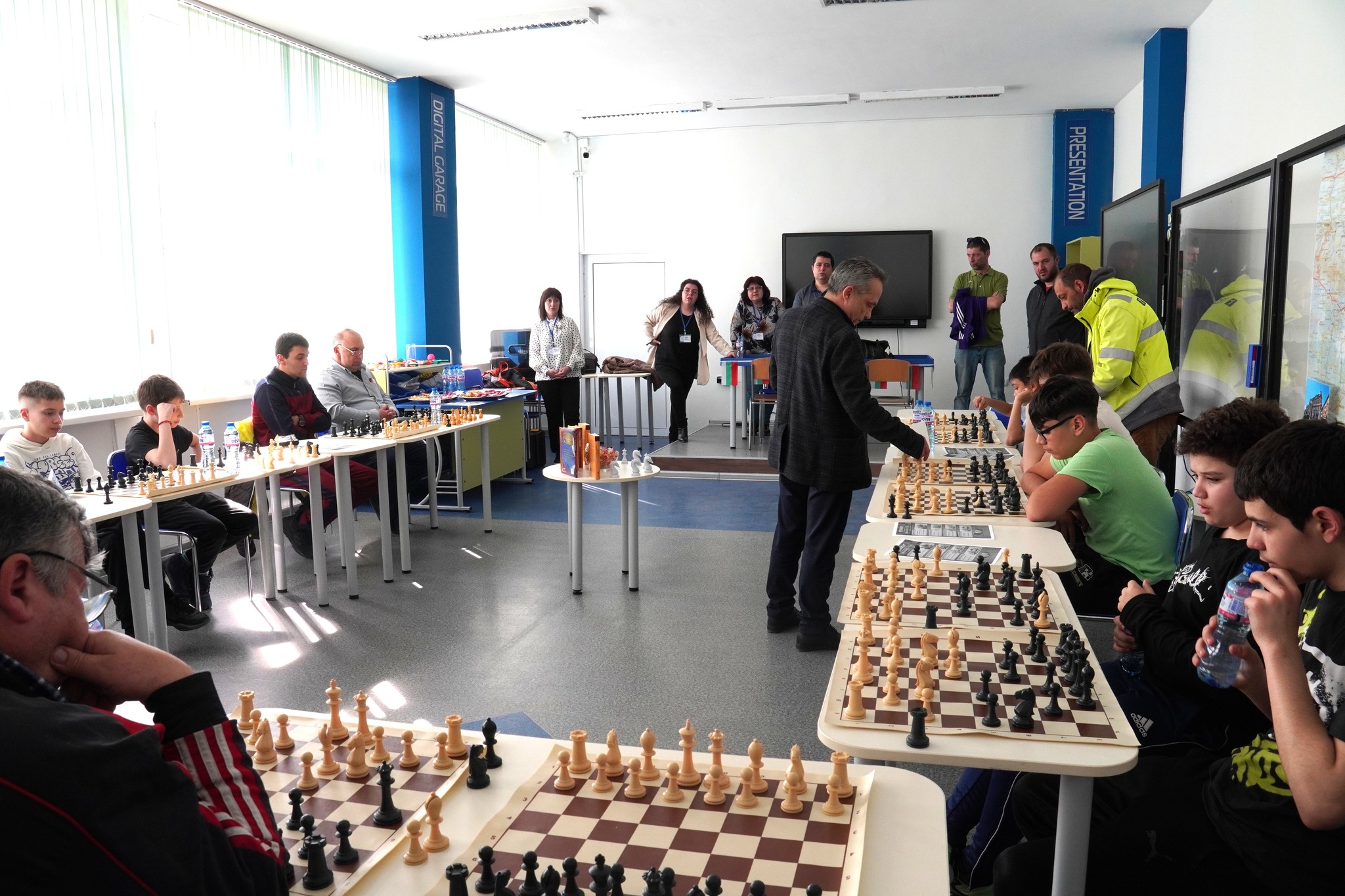 Дни преди официалното честване на 16 март STEM центърът оживя като сцена на стратегическо мислене и концентрация. В залата цареше тишина, прекъсвана единствено от движението на шахматните фигури. В надпреварата директорът Янаки Лазаров премери сили с ученици, родители и гости на събитието.