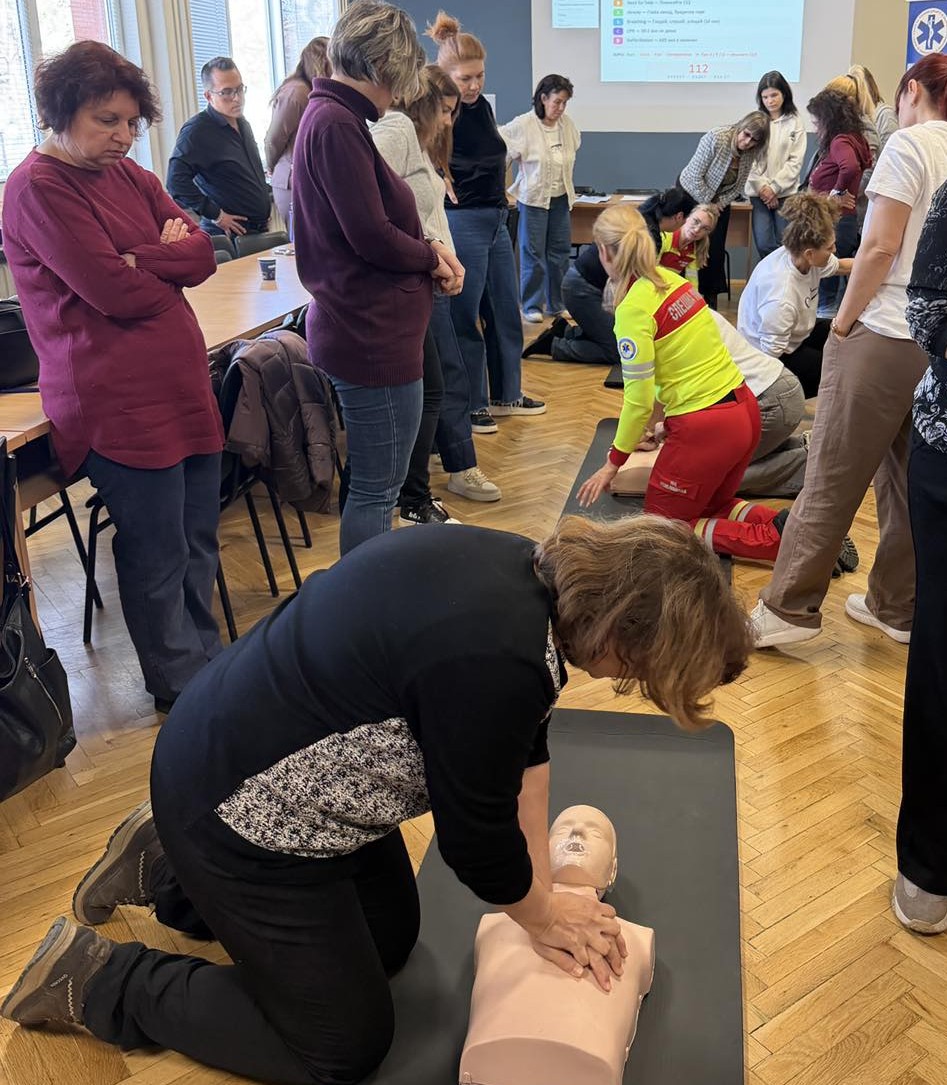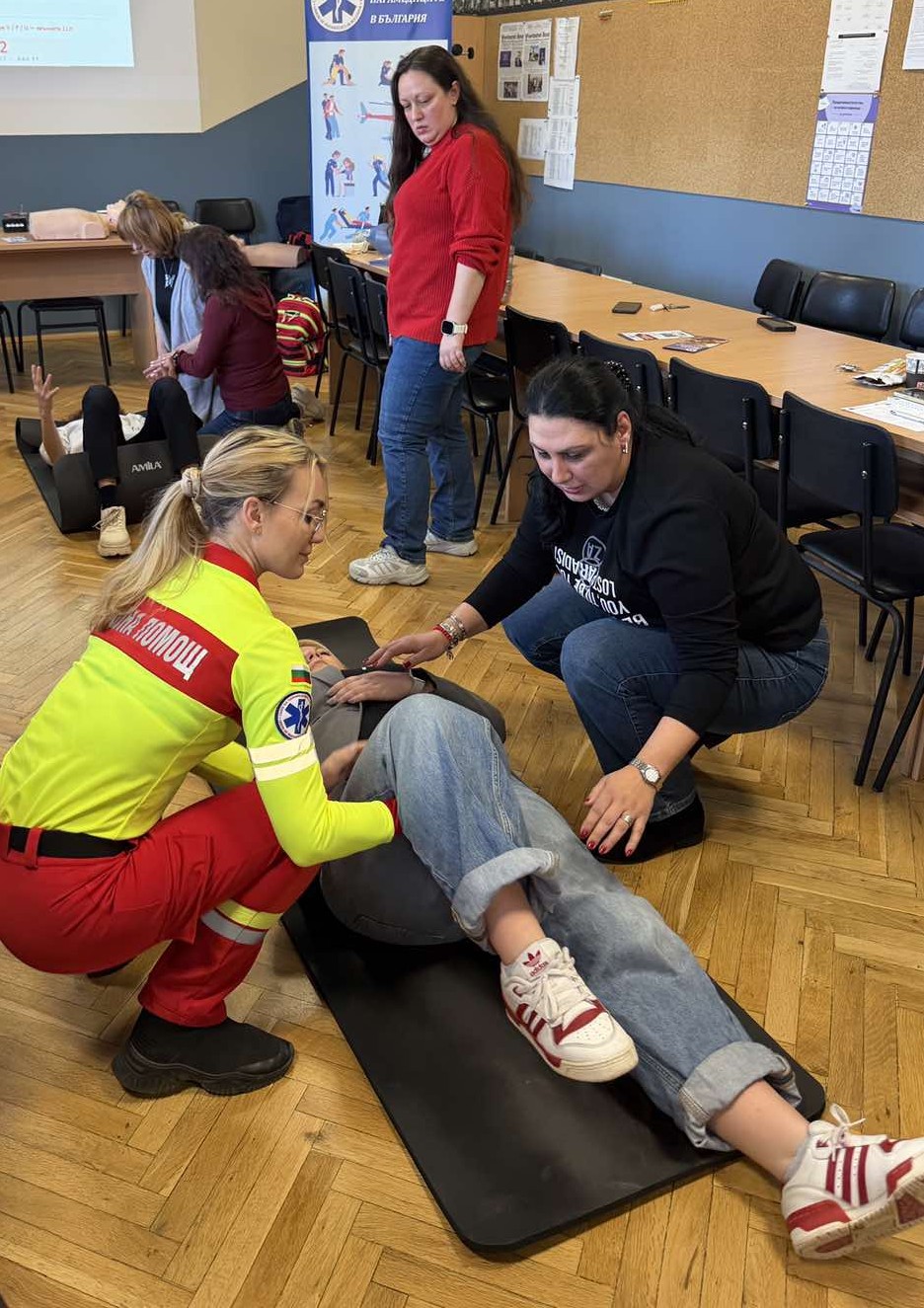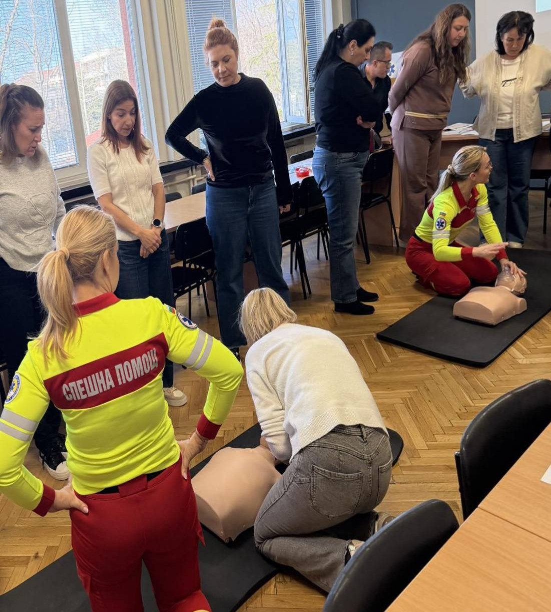 „Обучението дава спокойствие, че можем да помогнем в критичен момент, докато пристигне медицински екип. Организирахме го по желание на колегите, които се притесняват и невинаги знаят как да реагират“, сподели директорът на гимназията инж. Даниела Симеонова.