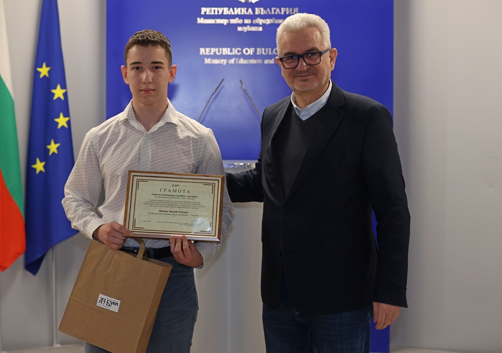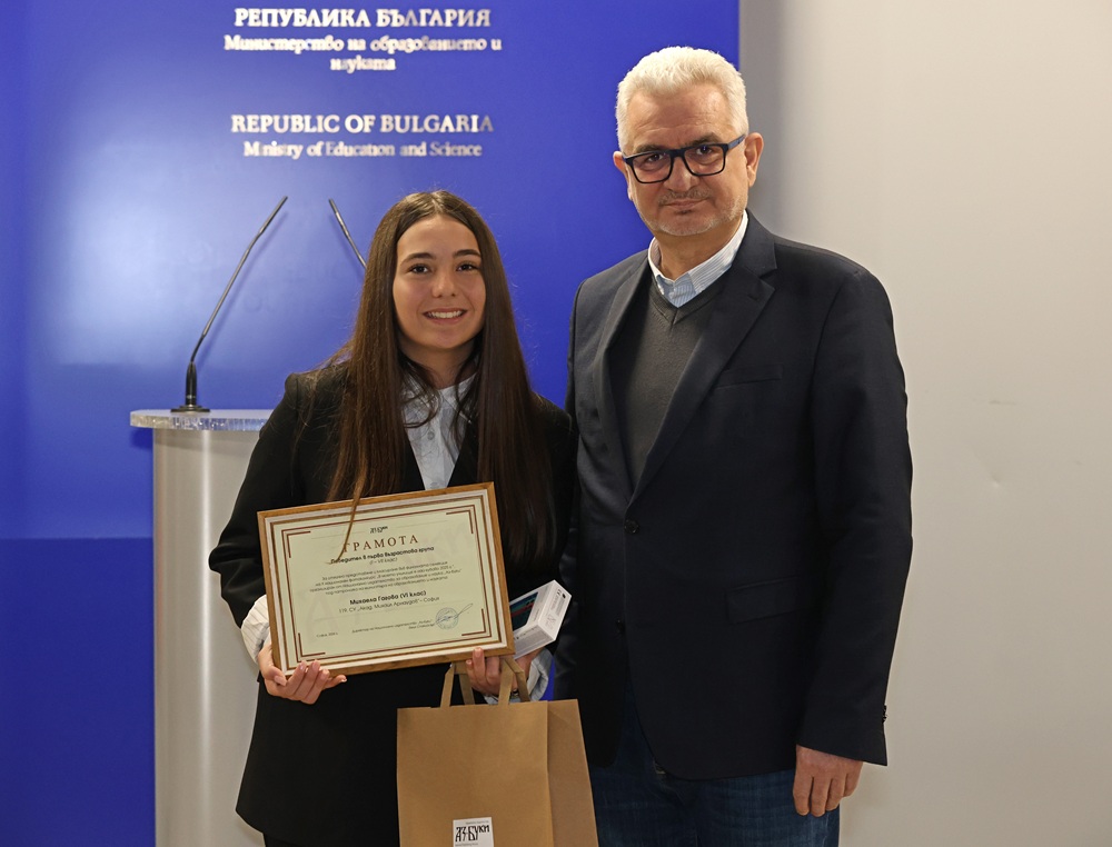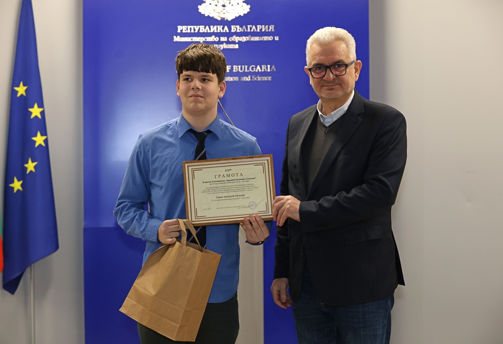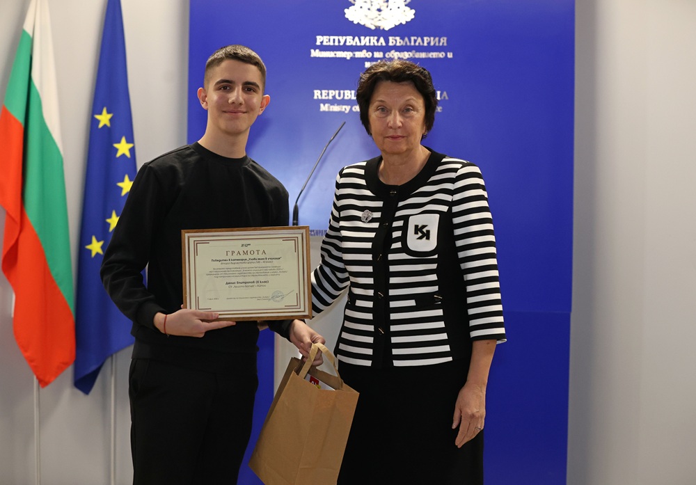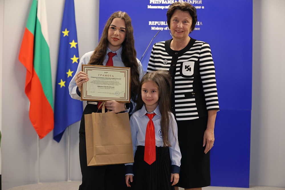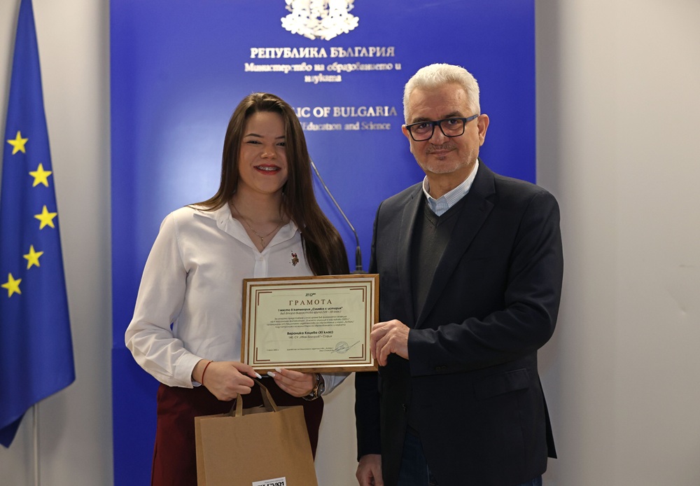 Зам.-министър Лазарова връчи отличията на победителите в трите категории във втора възрастова група (VIII – XII клас) – „Улови мига в училище“, „Героите на моето училище“ и „Снимка с история“.
