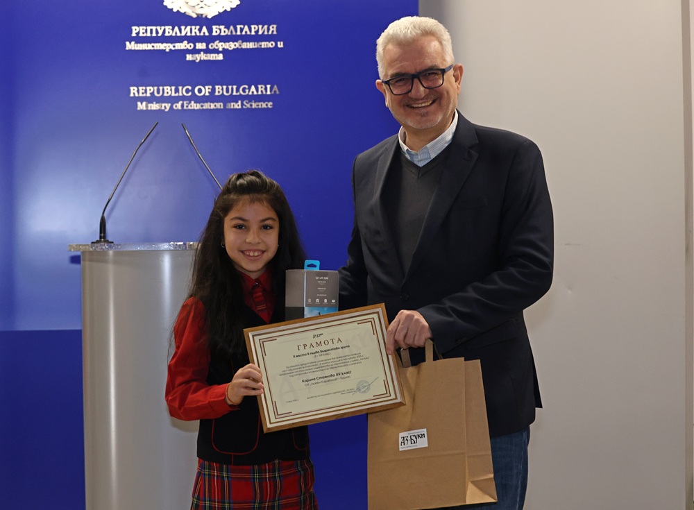 Победителката Михаела Гагова от 119. СУ „Акад. Михаил Арнаудов“ в София бе отличена със смартфон. Заелата второ място Карина Стоянова от бургаското ОУ „Любен Каравелов“ спечели екшън камера. А спечелилата трето място Никол Неделчева от ОУ „Любен Каравелов“ в Попово получи фотоапарат.