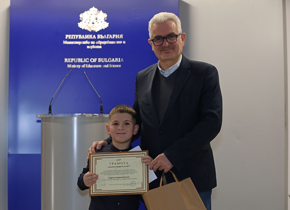 Отличието на „Аз-буки“ отиде при второкласника Владиан Кочеманов от ОУ „Св. св. Кирил и Методий“ в с. Смилян, община Смолян. Освен грамота той получи и ваучер за книги.