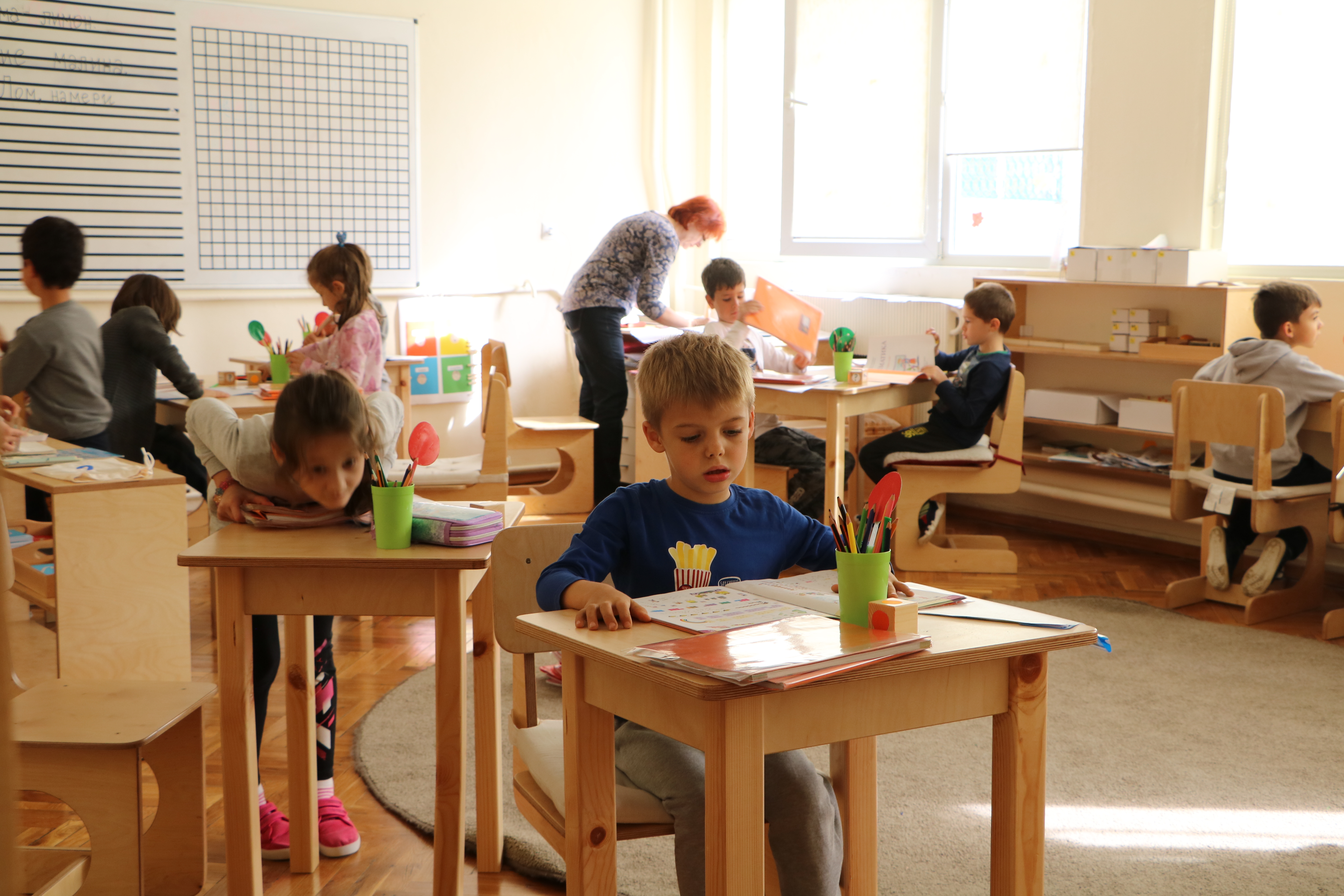 „В началото въведохме смесен блок на целодневната организация на учебния ден. Така учениците имаха възможността освен до дидактичните Монтесори материали и подготвената среда да се докоснат и до тричасовия урок, който е един от основните Монтесори принципи. Чрез редуването на общообразователни предмети и часове по самоподготовка на учениците се предоставя нужното време, за да могат подрастващите със собствено темпо да покоряват всеки малък връх в своето развитие. Това, от своя страна, е предпоставка за активна работна атмосфера по време на тричасовия урок“, споделя пред „Аз-буки“ директорът на училището Таня Николова.