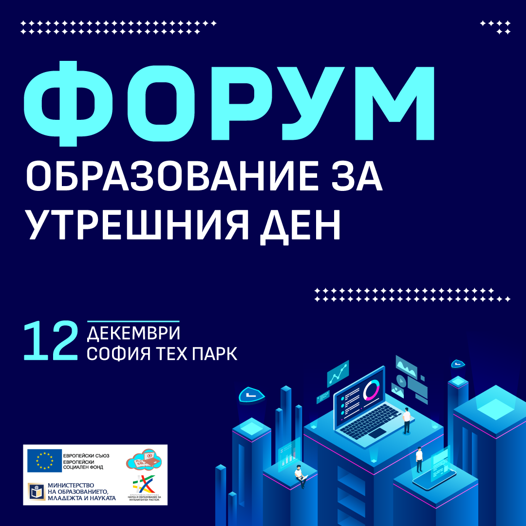 Министерството на образованието и науката организира форум “Образование за утрешния ден” на 12 декември 2023 г. в „София Тех парк“. Събитието ще бъде открито от министъра на образованието и науката проф. Галин Цоков и ще продължи през целия ден.