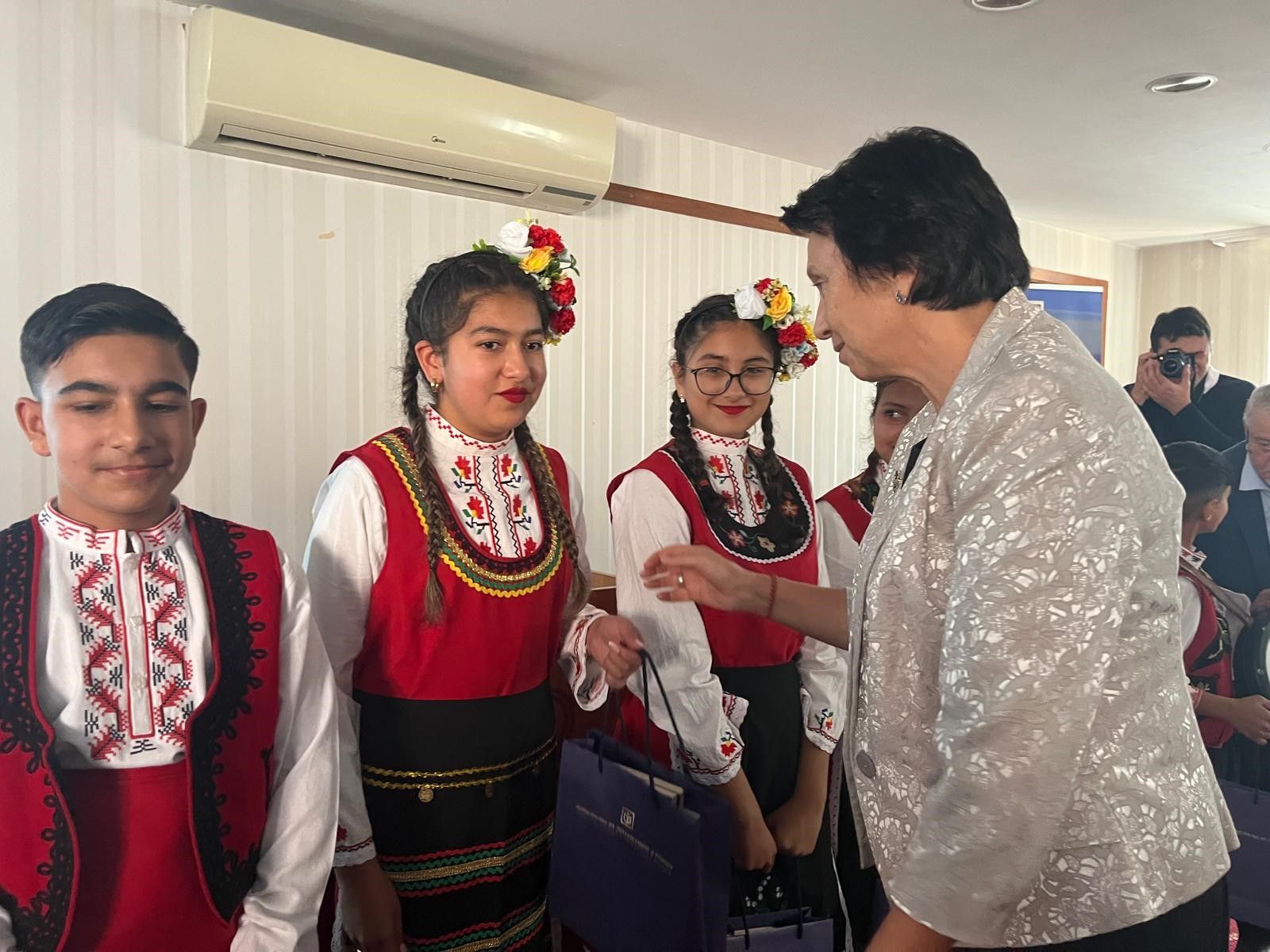 Лазарова благодари на учителите за тяхната всеотдайност и творчество в работата с деца и ученици и подчерта значението и на различни дейности по националните програми на МОН, както и по проекти с европейско финансиране.