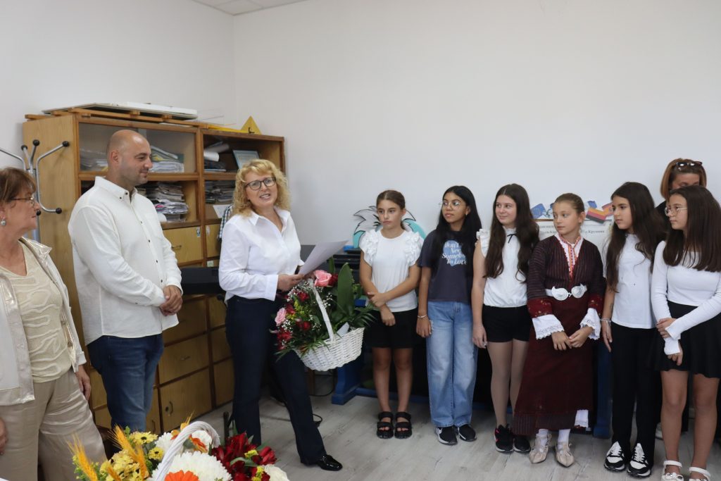 На специална церемония Зашева поема директорския пост малко преди началото на учебната година от дългогодишния ръководител на средното училище Венцислав Кълбов.