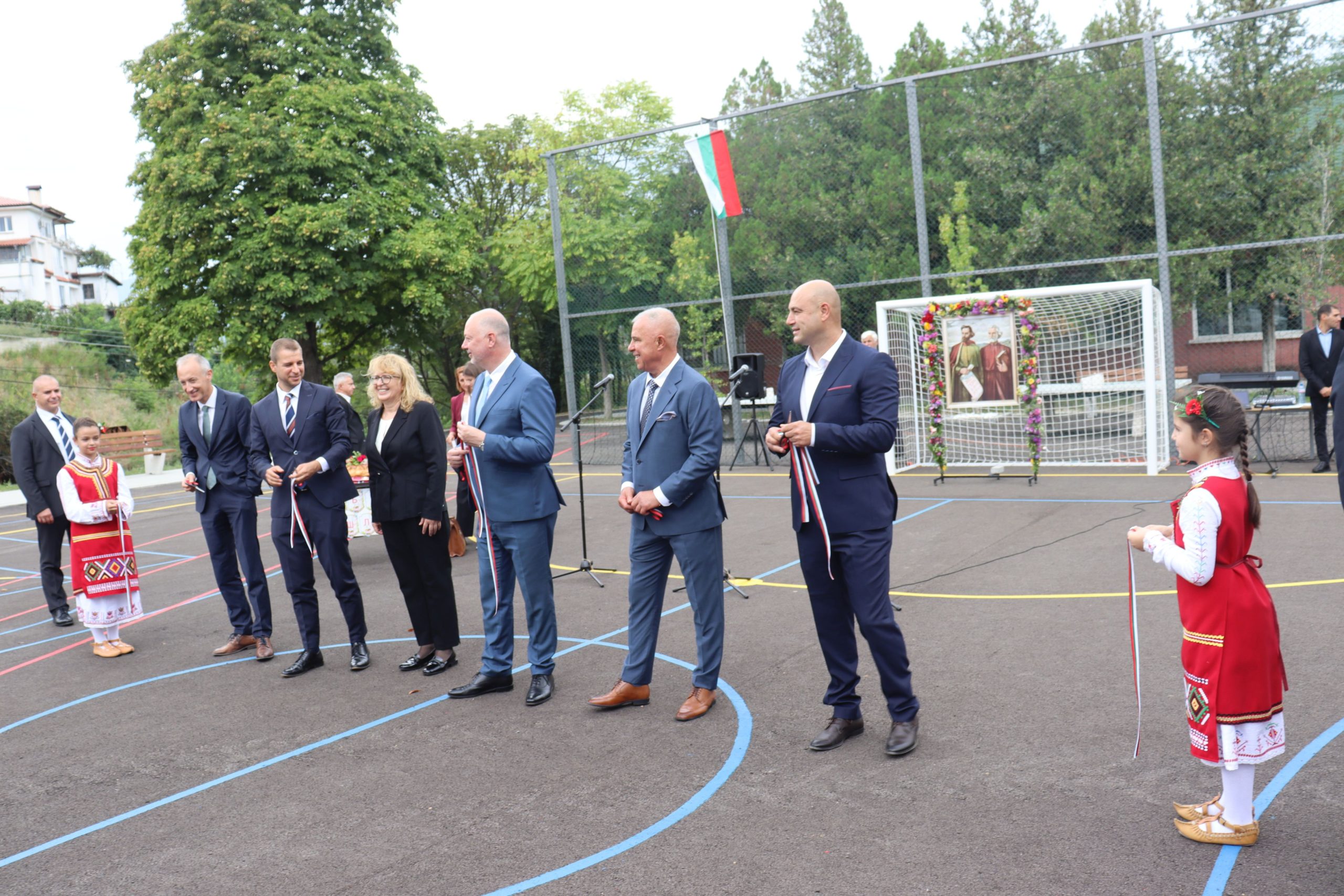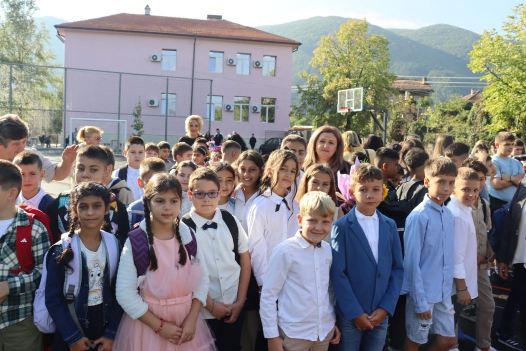 Село Крупник (11 септември 2025) Министър-председателят Росен Желязков, министърът на образованието и науката Красимир Вълчев и министърът на външните работи Георг Георгиев присъстват на откриването на обновеното училище в село Крупник, община Симитли.
