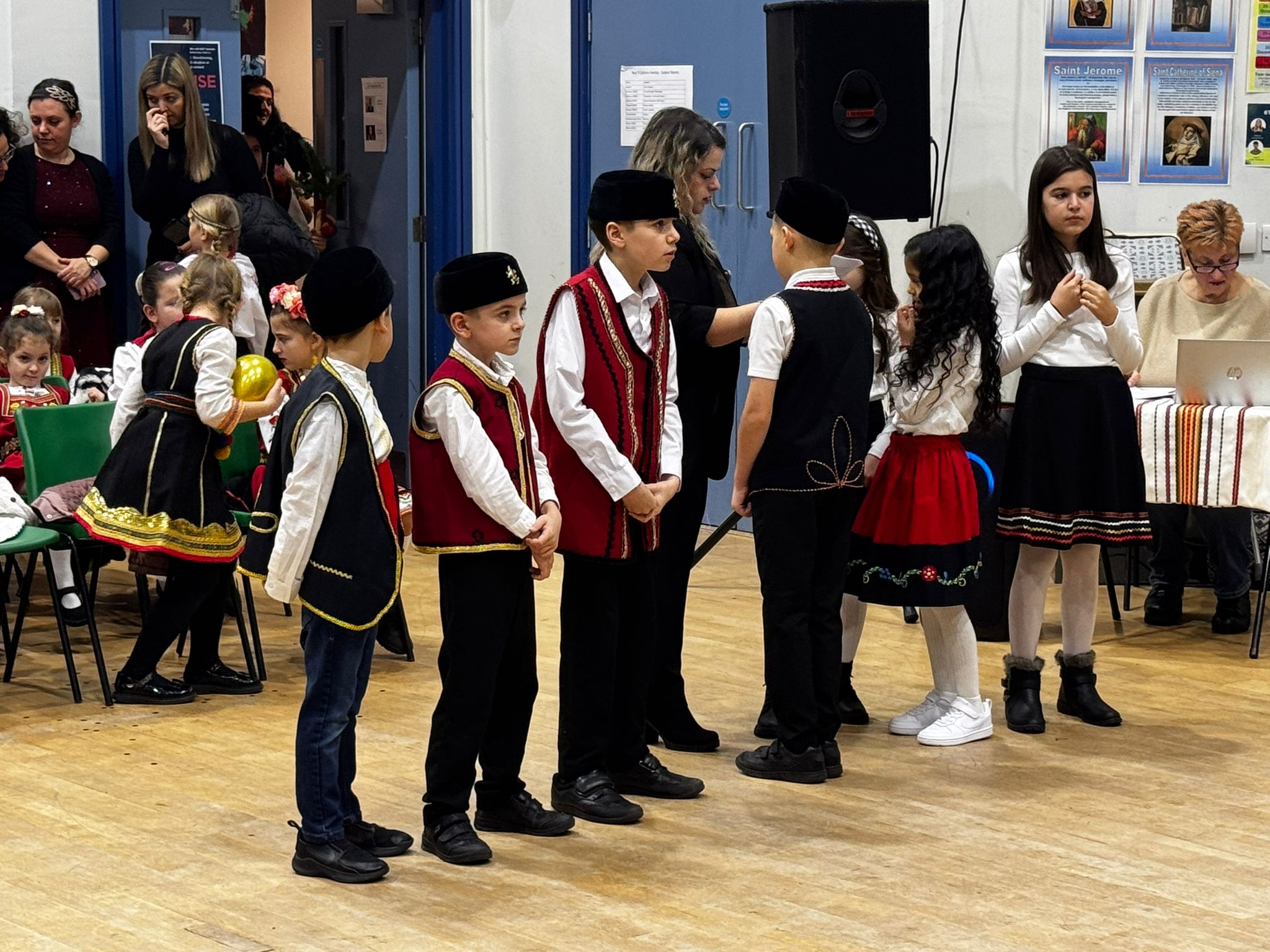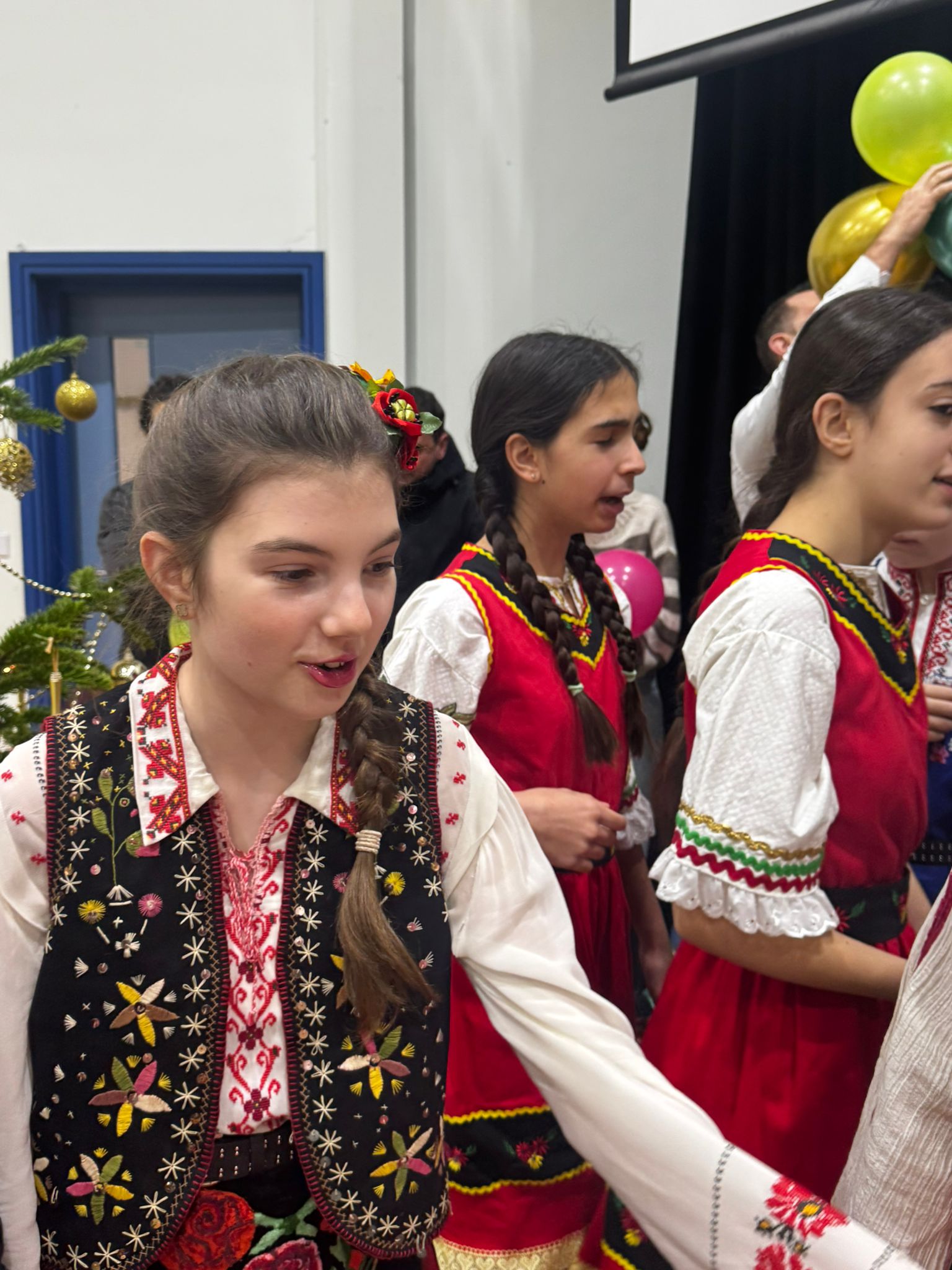 „Концепцията на тържеството беше да покажем как се празнува Коледа в България и в Англия и че въпреки различните традиции ни обединяват обичта към семейството, надеждата и вярата в новото начало. Десет деца в народни носии разказаха за българските обичаи, последвани от коледари, фолклорни танци и представяне на английските традиции. Най-малките ученици доукрасиха елхата с песни и танци, а Дядо Коледа зарадва всички деца с подаръци“, споделя екипът на Българското неделно училище.