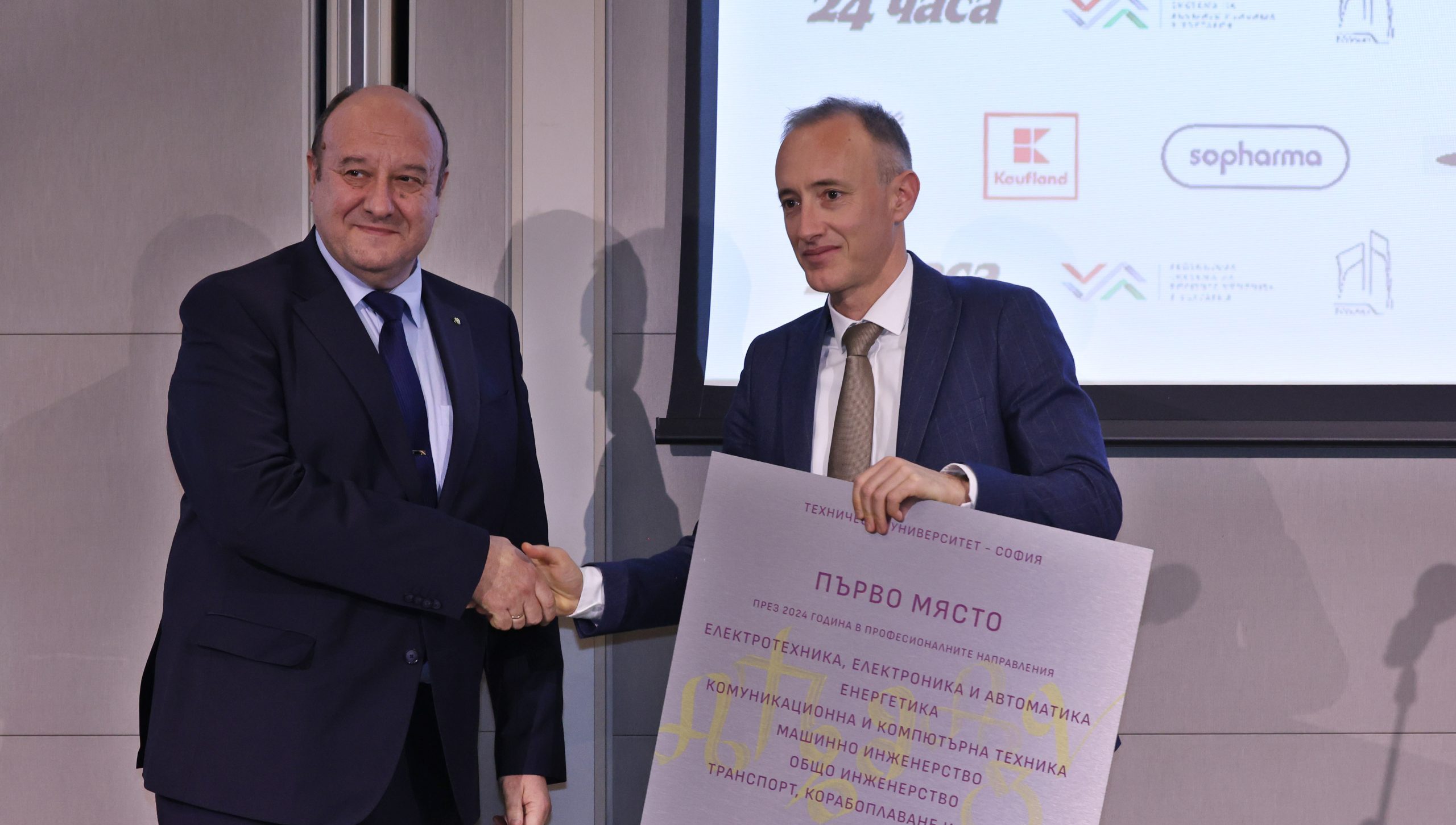 Министърът на образованието и науката Красимир Вълчев връчи награда на Техническия университет в София по време на традиционната церемония за присъждане на Академичните оскари за най-добре представените университети според Рейтинговата система на висшите училища за последната година. Отличието прие ректорът на ТУ – София, проф. Иван Кралов. През миналата година Университетът заема първо място в обучението по шест професионални направления във важни за икономиката технически специалности.