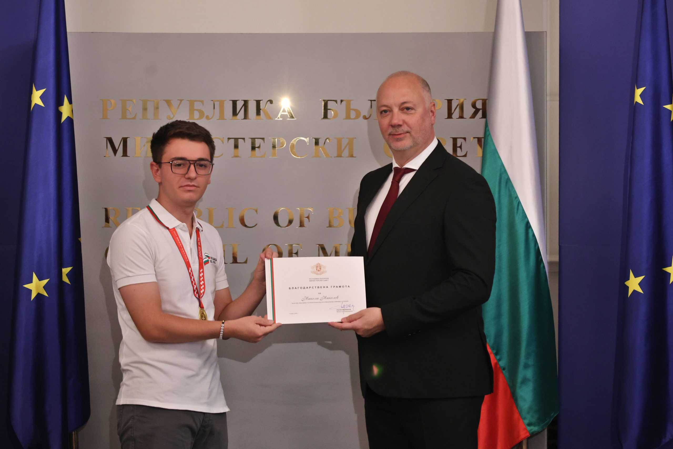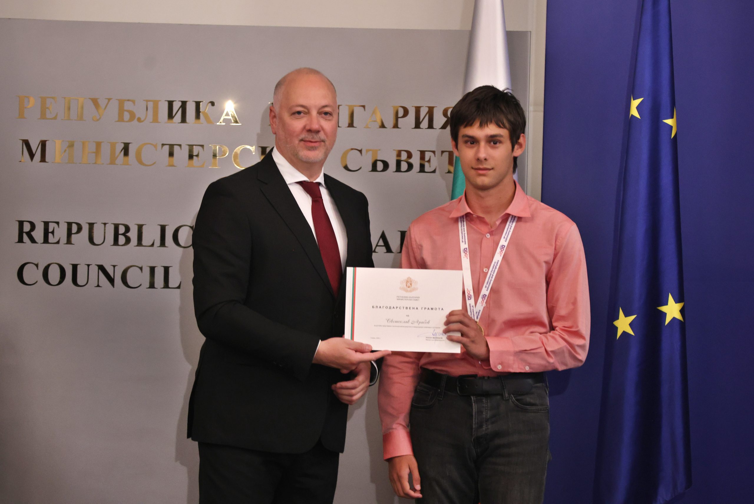 „Гордост е да видим, че сте развели българския флаг на толкова места по света, сред които Китай, Индия, Франция, Дубай. Има още редица състезания до края на годината. Убеден съм, че на тях ще спечелим още медали. Поздравления за вашата работа и упоритост, защото талантът не е достатъчен. Знаем, че зад вашите постижения стои много ежедневна работа и упоритост“, обърна съм към медалистите министърът на образованието и науката Красимир Вълчев.