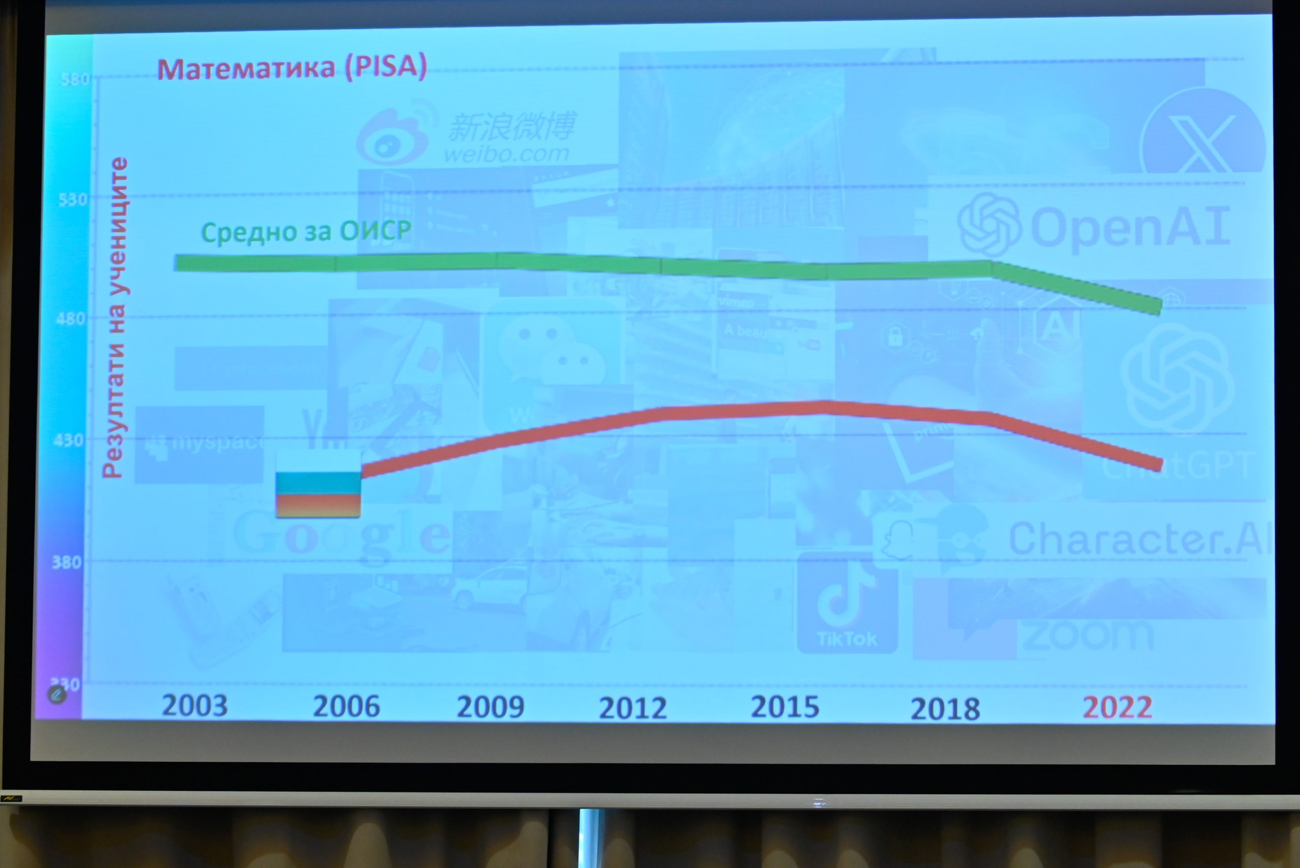 директора на дирекция „Образование и умения“ в ОИСР и създател на международното изследване PISA Андреас Шлайхер на заключителната конференция за присъединяването на България към ОИСР в областта на образованието. Андреас Шлайхер призна, че е виждал малко страни, които в продължение на много години са били толкова последователни и целенасочени в подобряването на образователния си процес, колкото България.