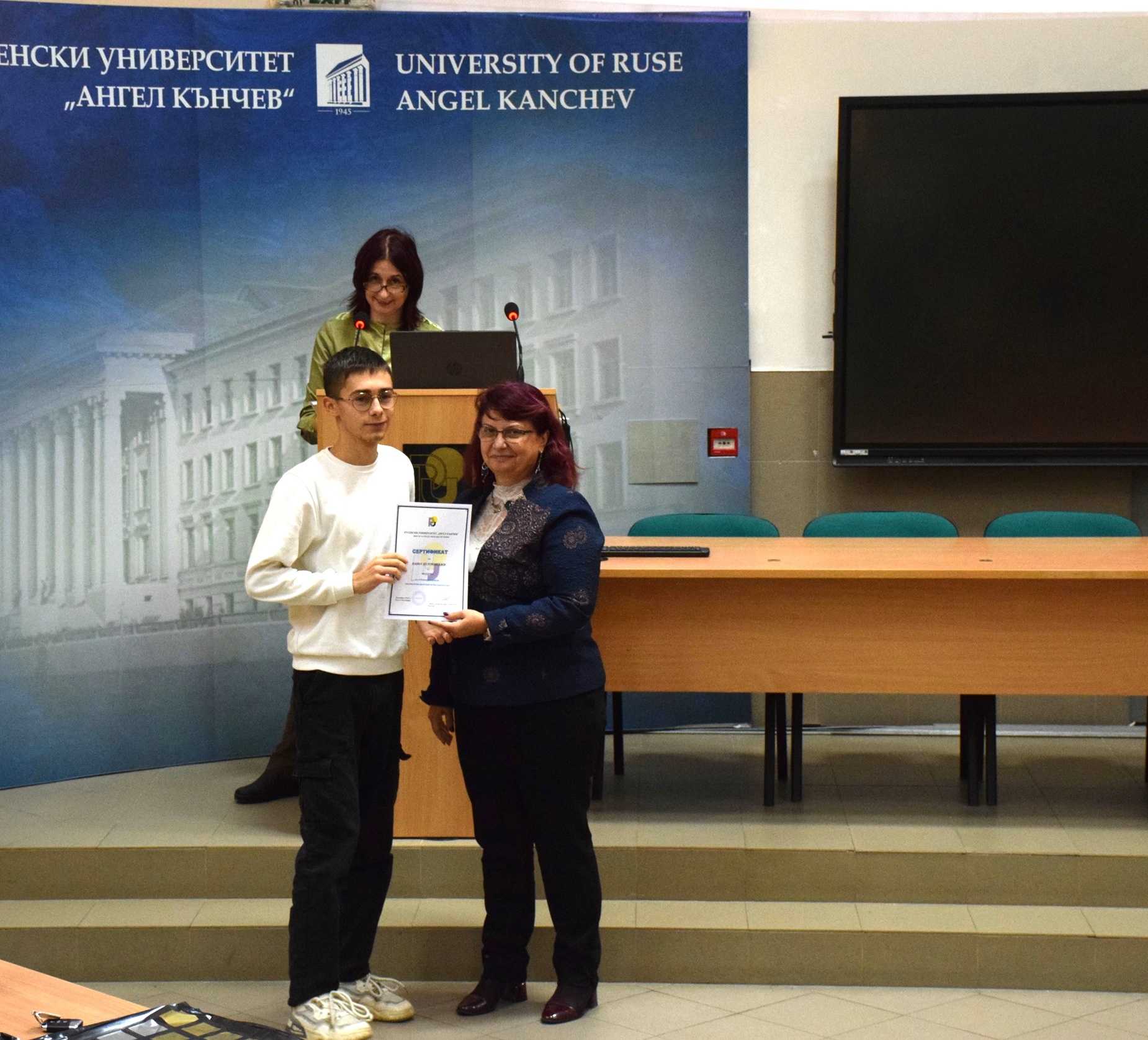 Сертификатите на учителите връчи акад. Христо Белоев – почетен ректор и председател на Общото събрание на Русенския университет, а ректорът доц. д-р Десислава Атанасова раздаде сертификатите на учениците. На събитието присъстваха преподаватели от катедрите „Български език, литература, история и изкуства“ и „Чужди езици“.