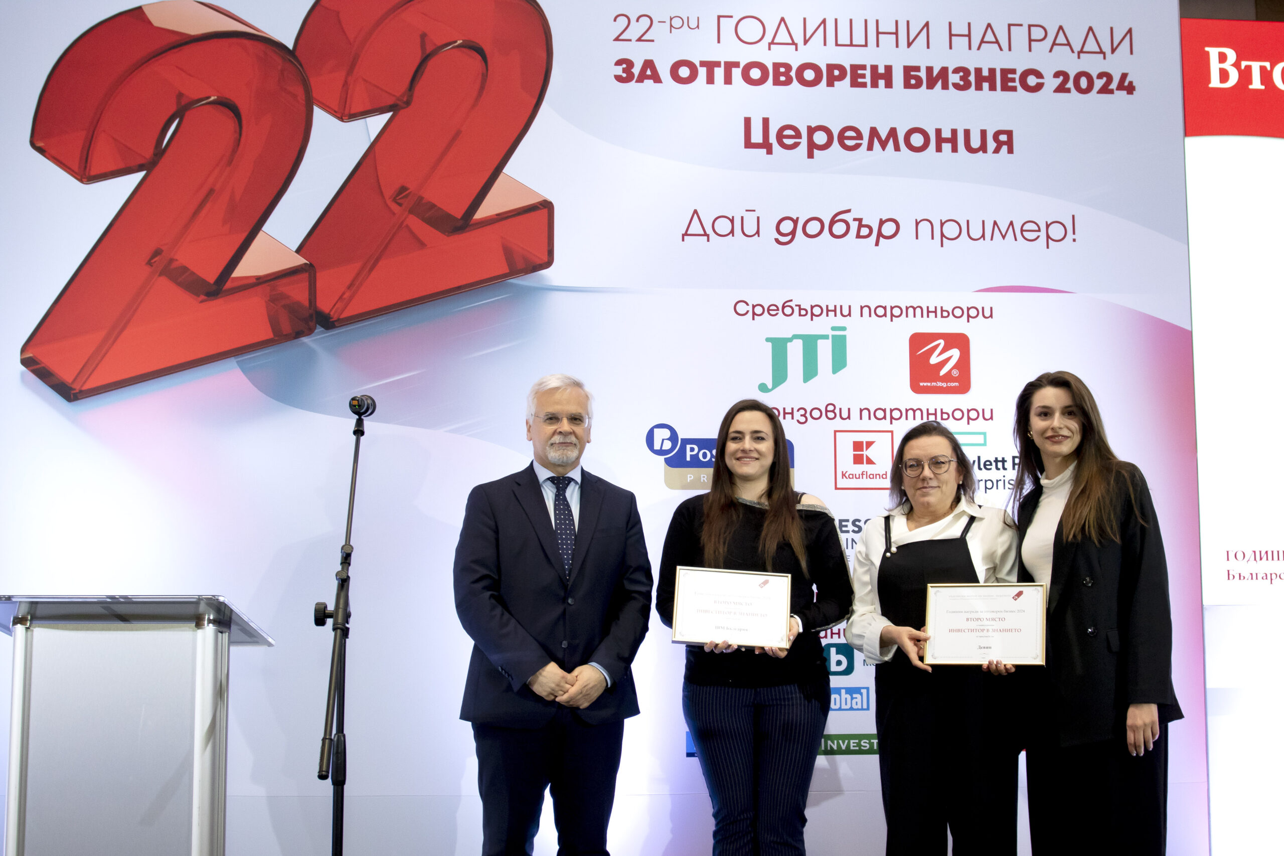 Церемонията по връчването на наградите за отговорен бизнес за 2024 г. се организира от Българския форум на бизнес лидерите. В 22-рото издание на конкурса участваха 100 корпоративни инициативи с принос към обществото, осъществени от 61 компании.