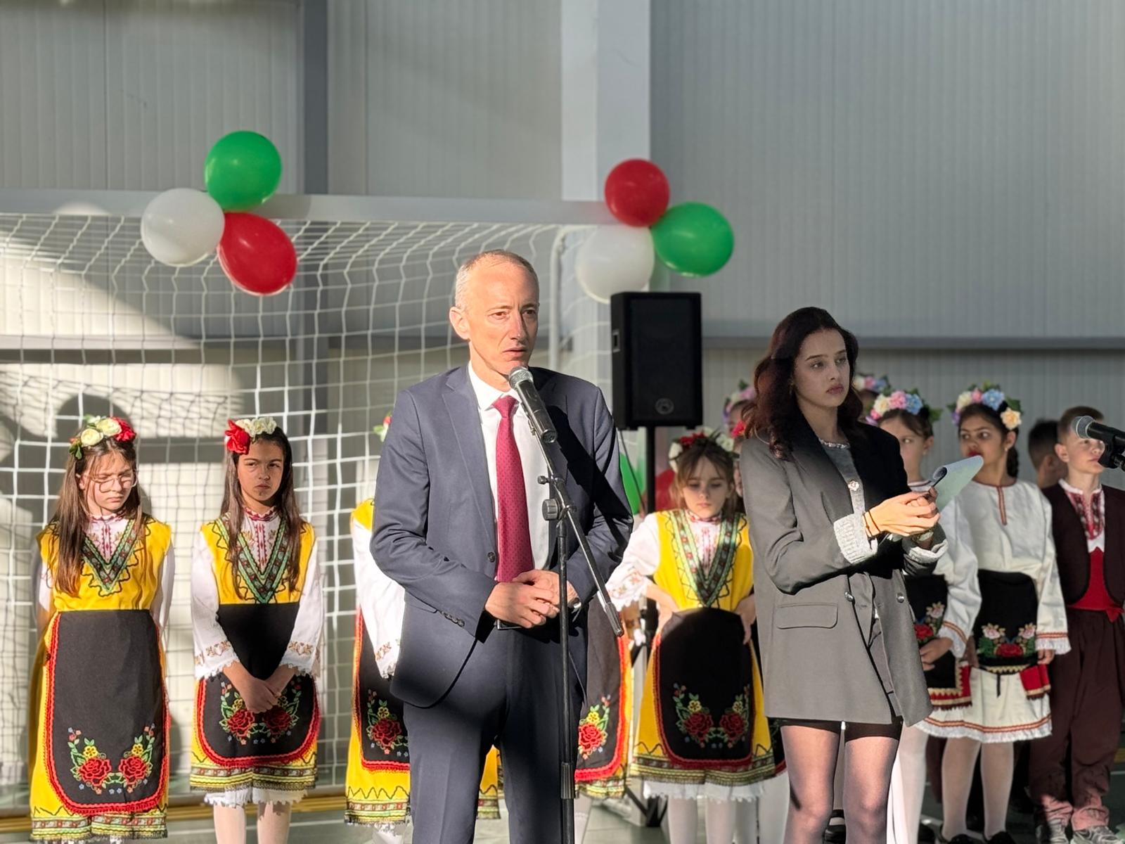 Министърът на образованието и науката Красимир Вълчев преряза лентата на новия салон в Съединение, който осигурява съвременни условия за спорт и физическа активност.