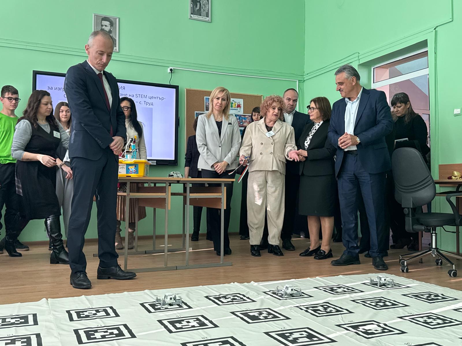 министър Вълчев откри STEM център и в ОУ „Св.св. Кирил и Методий“ в село Труд,