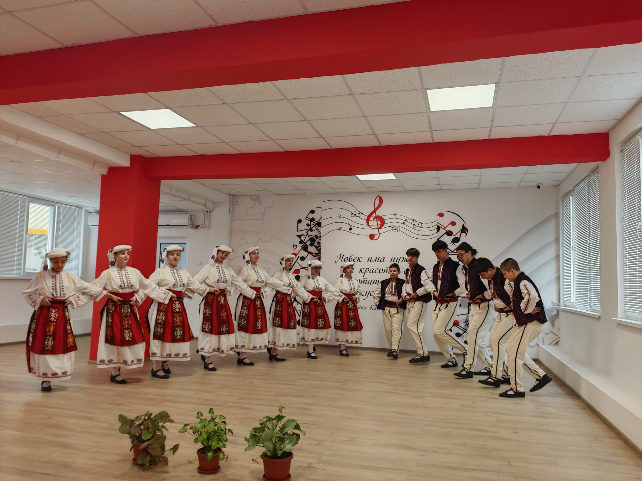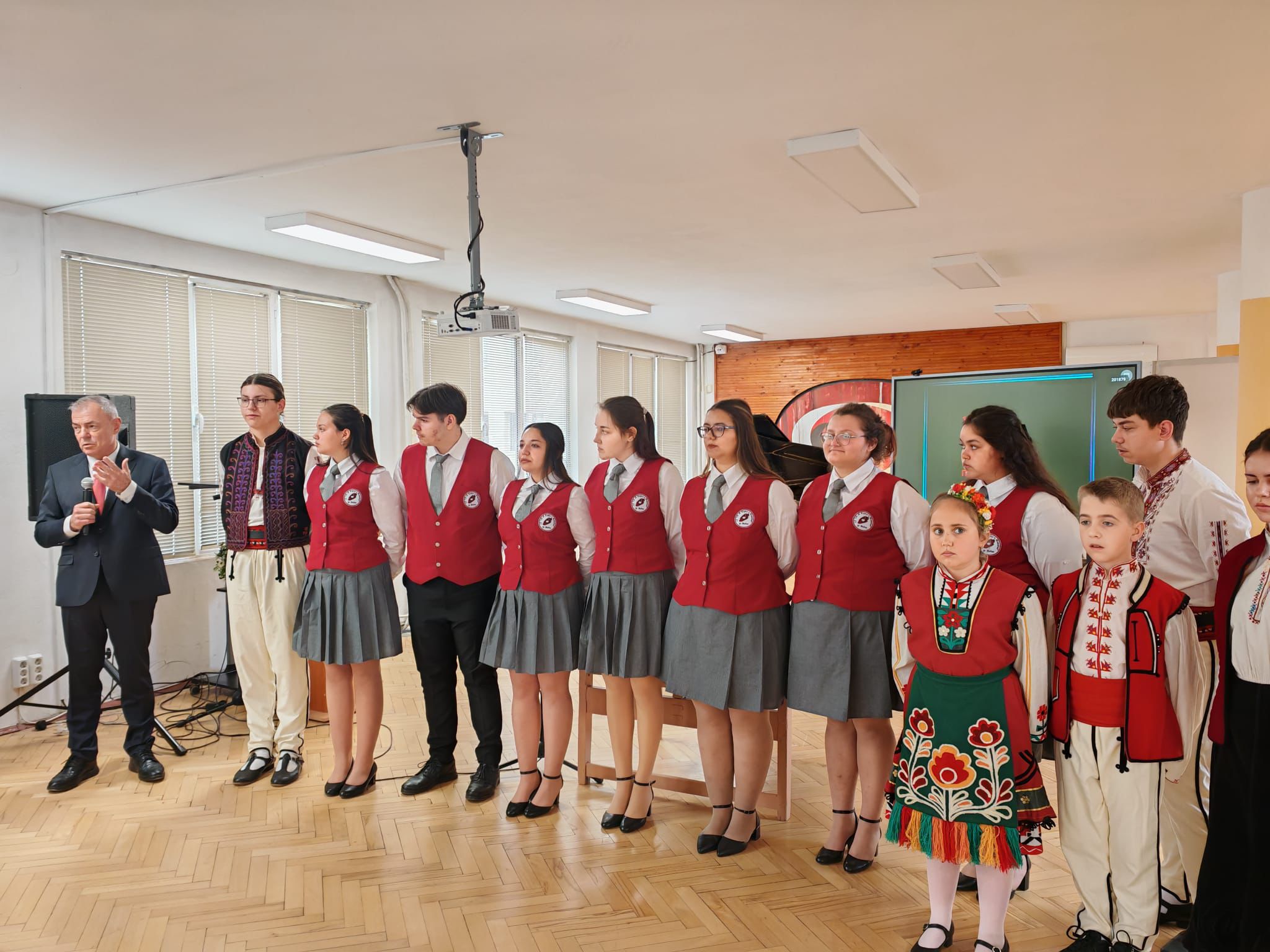 В Средно училище „Св. Св. Кирил и Методий“ учениците представиха драматизация „Гласове от миналото“, а министърът разгледа училищната материална база и музейната експозиция.