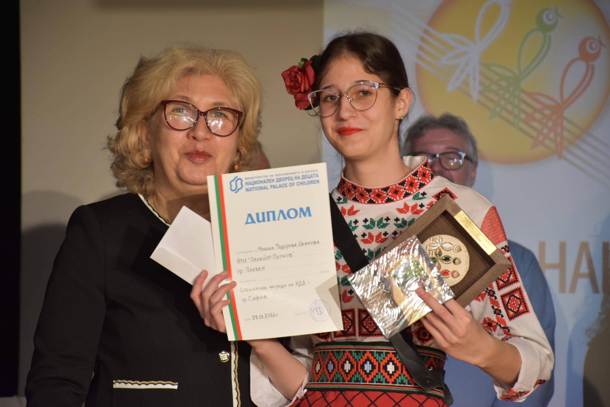 Националният дворец на децата отличава Моника Иванова (НУИ „Панайот Пипков“, Плевен) и Никола Димов (СУ „Св.св. Кирил и Методий“, Пордим).