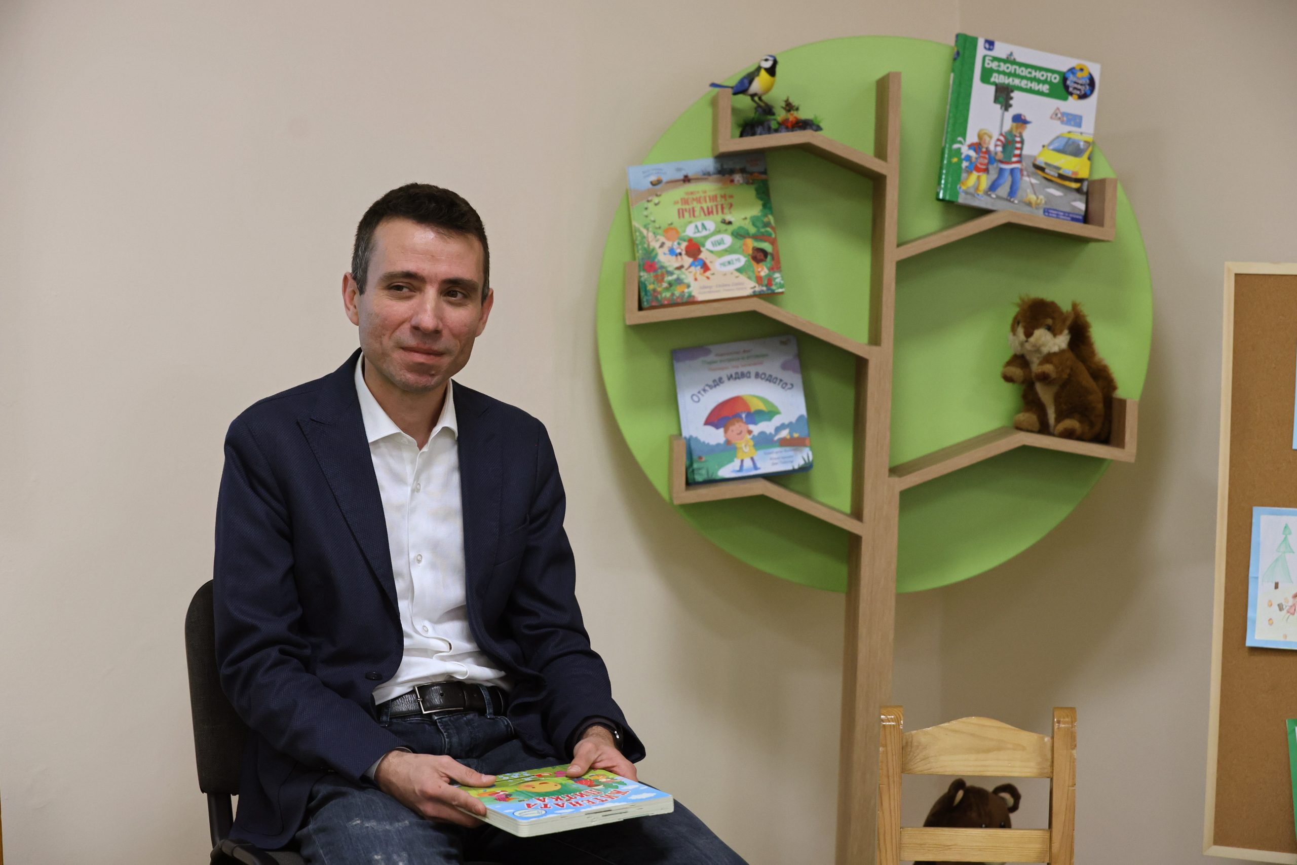 Заместник-директорът на Национално издателство за образование и наука „Аз-буки“ Венцислав Генков се срещна с деца от столичната 104. ДГ „Моят свят“ дни преди края на националната кампания „Походът на книгите“.