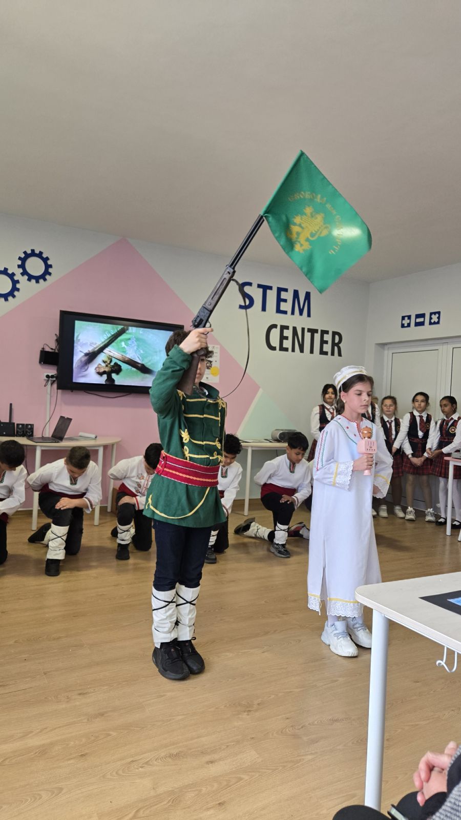 В заниманието учениците от III, V и VII клас пресъздадоха с признателност великото дело на всички, участвали в организацията на Априлското въстание, както и на предхождащите и съпровождащите го събития. Отдадоха почит към националните ни герои, като влизаха в ролята на революционерите с гордост, припомниха текста на Кървавото писмо и склониха глава пред множеството убити деца, жени и мъже в Баташкото клане.